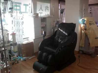 江戸川橋鈴木クリニックでは透析を受けられる患者様が多いので、少しでも患者様のお身体が楽になるようにとマッサージチェアを導入しました。今では透析を受けながらマッサージチェアを使っていらっしゃる方も多く、「時間が長く感じなくなった」「身体が楽になった」「透析の日が楽しみになった」と多くの患者様におっしゃっていただいており、改めて導入して良かったと感じています。
